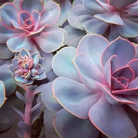 蓝石莲是景天科、拟石莲花属的多肉植物。茎部粗壮,成熟植株茎部木质化。叶片莲座型密集排列,株径不会很大,…