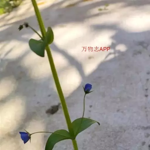 一年生匍匐柔弱草本,高达30cm;枝条散生,茎有4棱,具短翅。叶对生,无柄;常向外反折;叶片卵形,有主脉5条,背面有紫色斑点。花单生于叶腋;花梗长2—3cm,下弯;花萼5深裂;花冠蓝色,钟状幅形,5深裂,裂片边缘有睫毛;雄蕊5枚,生于花冠基部,有纤毛。蒴果球形,果实盖裂。花期3—5月。