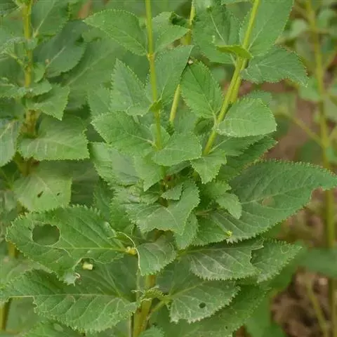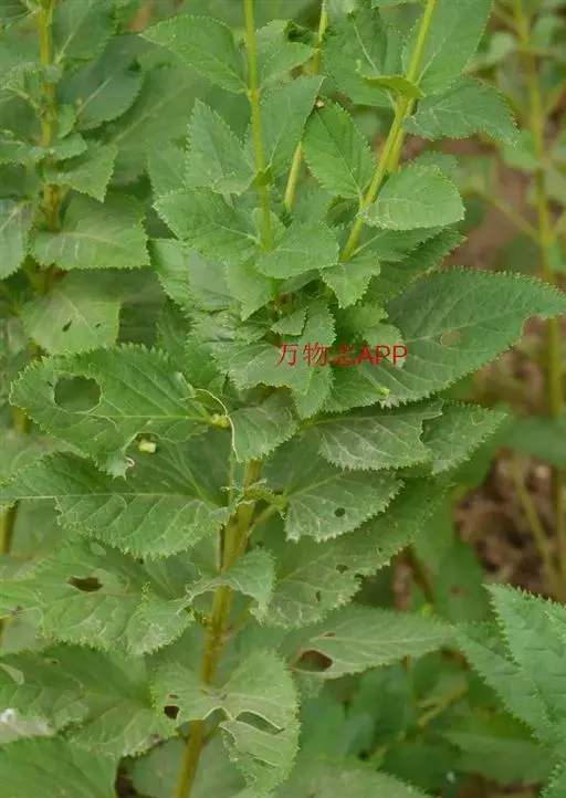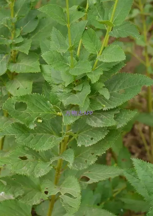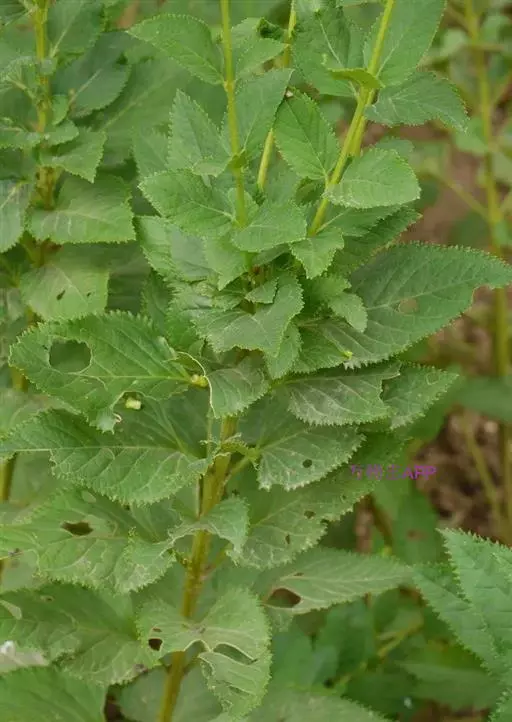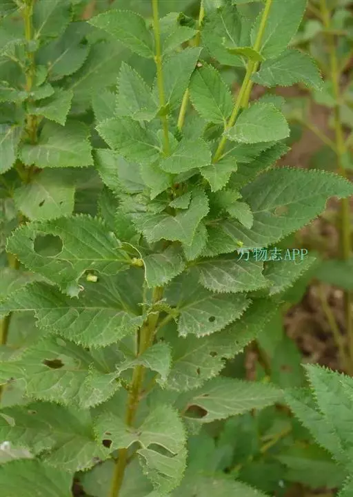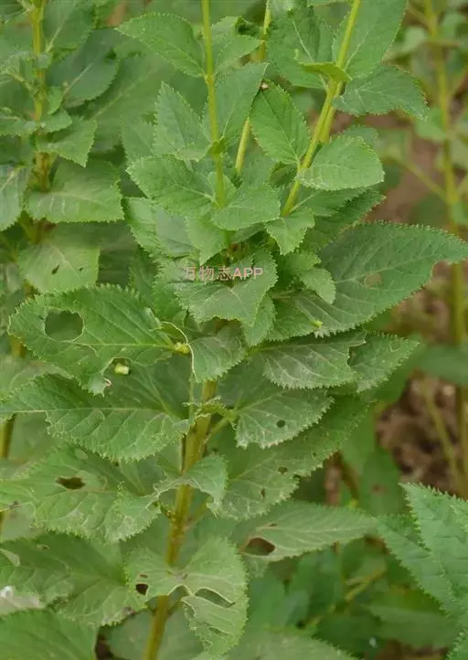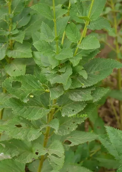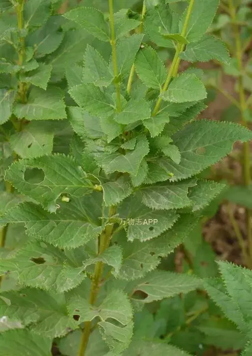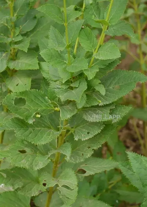 北玄参(学名:Scrophularia buergeriana Miq.)是玄参科、玄参属多年生草本植物。植株高大,100-150厘米。根肉质肥厚,呈圆柱形或纺锤形,淡黄色,有多数细根。茎直立,四方形。单叶对生,叶片长卵形,边缘有锐锯齿。聚伞花序,密集排列于枝顶端呈穗状。蒴果卵圆形。花期7-8月,果期8-9月。