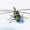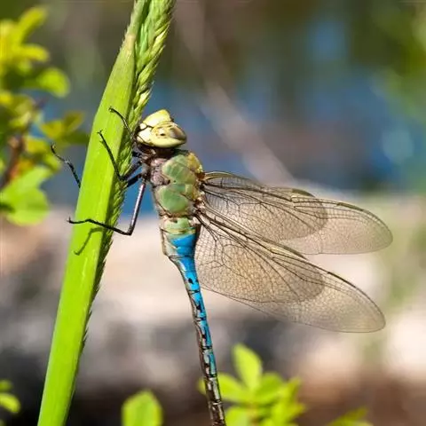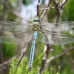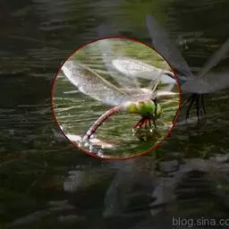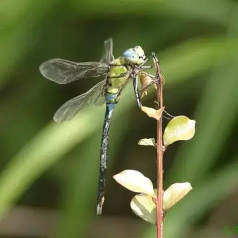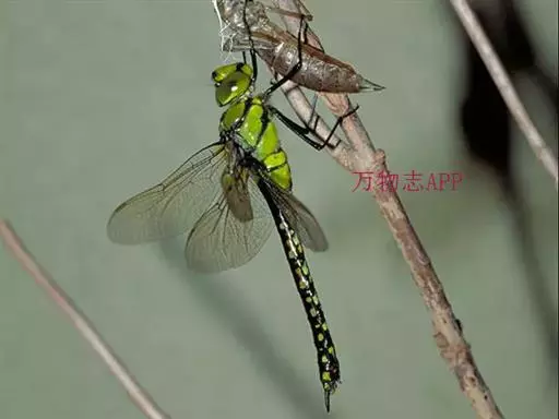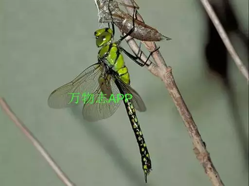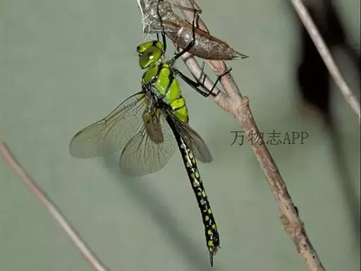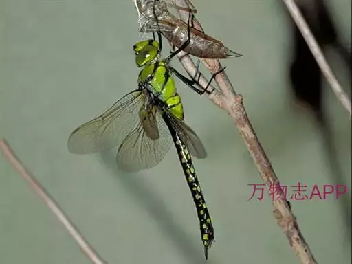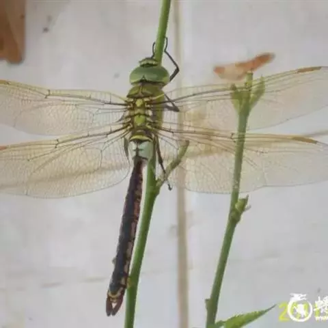 黑纹伟蜓 雄性腹长57mm,后翅长50mm,部下唇黄色,中叶端具黑缘;上唇黄色,具宽的黑色前缘;前唇基黄绿色,前缘中央淡褐;后唇基绿色,前缘两侧具很细的褐色缘;额绿色,上额具1黑色“T”形斑纹。胸部合胸背前方绿色,无斑纹,合胸侧面黄绿色,具黑色条纹,足黑色,翅透明,翅痣黄褐色。 成虫后,未成熟的蜻蜓身体颜色呈现绿色,成熟后的蜻蜓身体呈现蓝色。