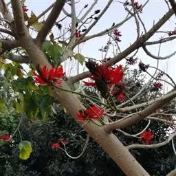 刺桐,是豆科刺桐属乔木植物。树皮灰褐色;分枝有圆锥形黑色皮刺;叶柄无毛,无刺;花密集,…
