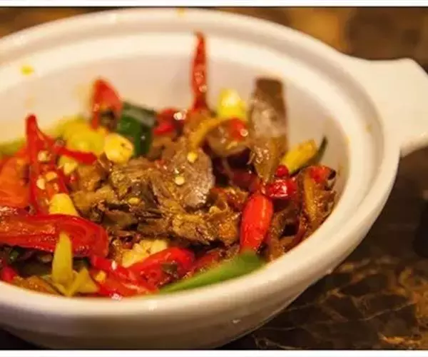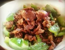 辣椒,又名尖椒。青辣椒可以作为蔬菜食用,干红辣椒则是许多人都喜爱的调味品。辣椒能改善食欲、增加饭量。辣椒具有强烈的促进血液循环的作用,可以改善怕冷,冻伤,血管性头痛等症状。它含有一种特殊物质,能加速新陈代谢以达到燃烧体内脂肪的效果,从而起到减肥作用。辣椒能杀抑胃腹内的寄生虫。它含有丰富的维生素C、可以控制心脏病及冠状动脉硬化、降低胆固醇。它还含有较多抗氧化物质,可预防癌症及其他慢性疾病。可以使呼吸道畅通,用以治疗咳嗽、感冒。 黄牛肉的营养价值很高,特点是高蛋白、低脂肪,属于温热性质的肉食,擅长补气,是气虚之人进行食养食疗的首选肉食,《韩氏医通》记载“黄牛肉补气,与绵黄芪同功。”就补养的脏腑来说,黄牛肉重在补养脾胃,从而滋养其他脏腑。