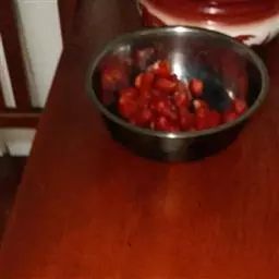 3、青、红尖椒切细圈,大蒜去皮切成末。