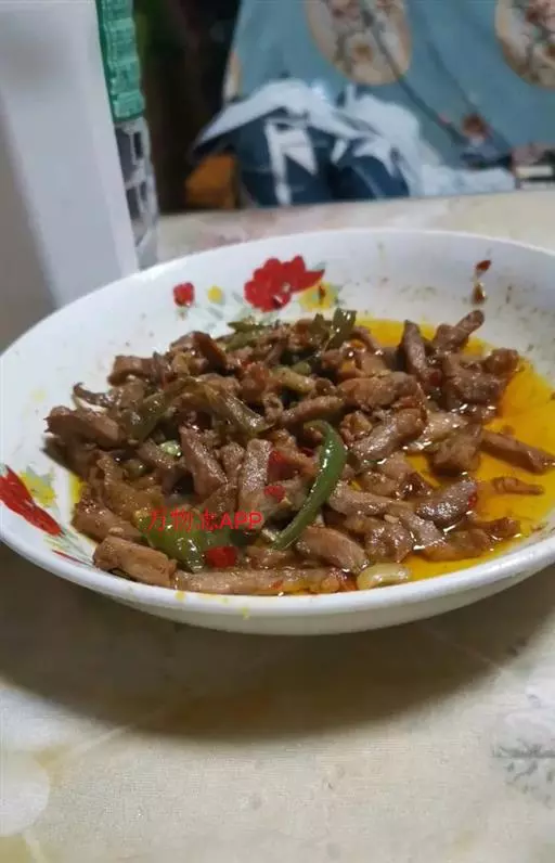 小炒黄牛肉 主料:黄牛肉(牛里脊肉)200克、青尖椒100克、红尖椒100克。