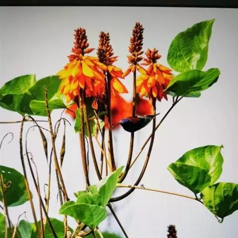 鹦哥花是豆科刺桐属植物,小乔木或乔木。树干和枝条具皮刺。羽状复叶,叶柄平滑,顶生小叶近肾形,侧生小…