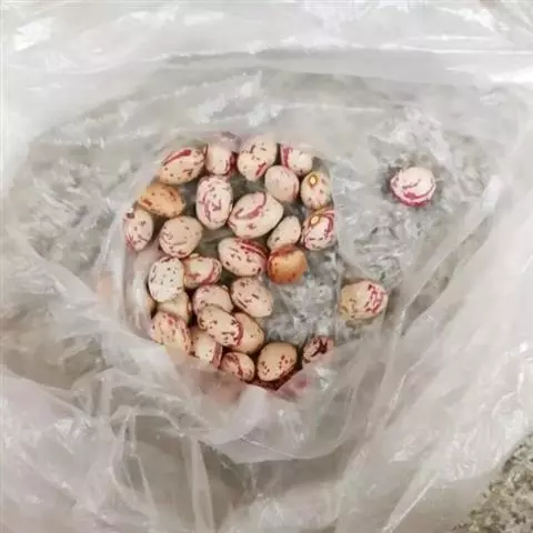 荷包豆因外形酷似少数民族的荷包而得名,又名肾豆,因其形状如人体肾脏、全身布满红色经络花纹而得名。
