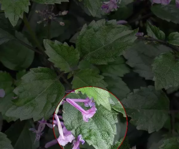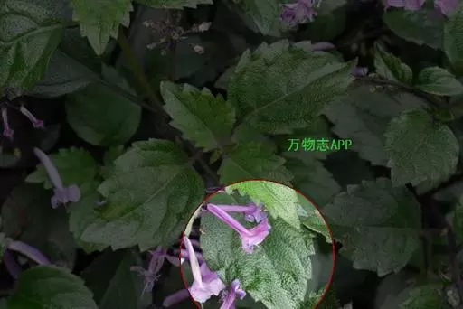 多年生草本,茎直立,高30~60厘米,疏分枝,略四棱,有白色多节长毛,基部节膨大膝曲。叶对生,叶片宽卵形或三角状宽卵形,长4~10厘米,宽2.6~6厘米,先端渐尖,基部契形,稍下延,边缘具钝圆疏锯齿。穗状花序头形,顶生或腋生,有花数朵,长2.5~3.5厘米,腋生者具总花梗;苞片叶状,外面的长约1.5~2厘米,里面的较小;小苞片条状匙形,长约1厘米;花萼裂片5,线形,先端钝,约与小苞片等长,三者均具白色多节柔毛;花冠漏斗状,长2.5~3.5厘米,花冠筒稍弯曲,下部狭细,外面在裂片部分硫生短柔毛,里面有2行短柔毛,裂片5,几相等,长约5毫米;雄蕊2强,花丝基部有膜相连。蒴果长圆形,长约1厘米,近顶端有短柔毛;种子4颗,宽椭圆形,长约3毫米,有褐色微毛。花期8~9月,果期9~10月。