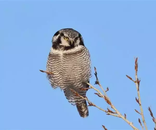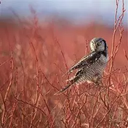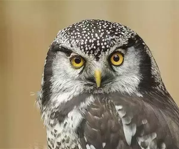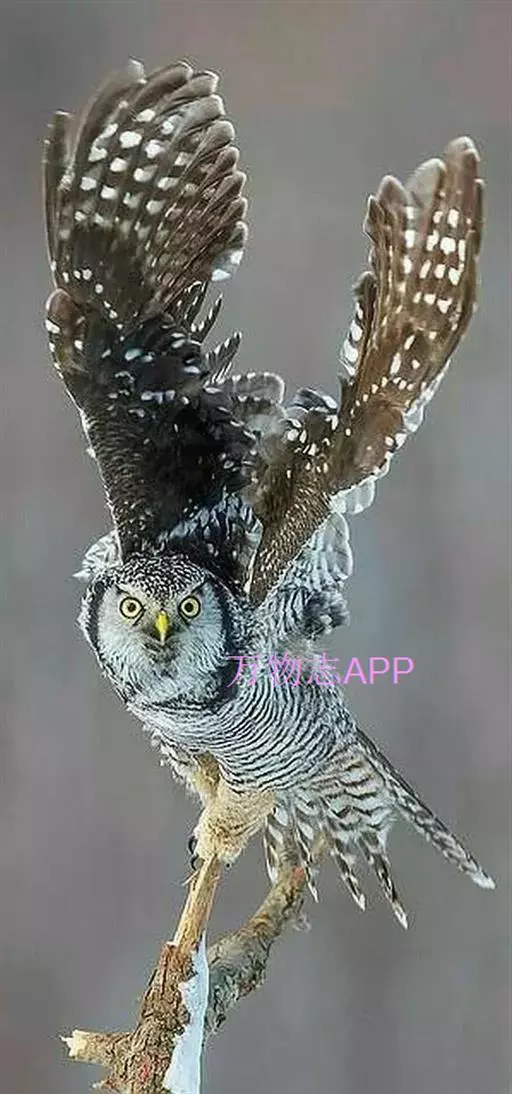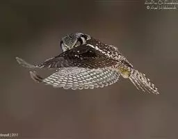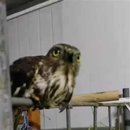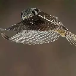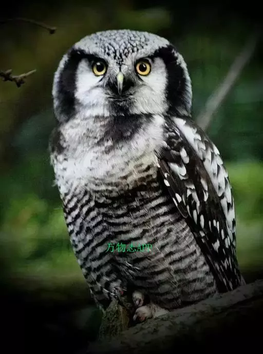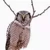 猛鴞(Surnia ulula),是中型鸟类,体长35~40厘米,体重247~375克。具鹰样的尾,脸部图案深褐色与白色纵横。属于国家二级重点保护野生动物。