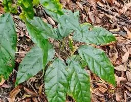 单叶,在茎下部的互生,中部以上的对生;叶片革质或近革质,长椭圆状卵形至卵圆形,或为卵状披针形至狭披针形,长5-20厘米,宽(1-)2-14厘米,顶端渐尖或骤尖,基部圆形,有时呈三角状缺刻,全缘,两面无毛,表面深绿色,背面粉绿色,基出脉3-5,网脉明显;叶柄长2-6厘米。