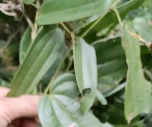 薯莨与柳叶薯蓣的区别在于该变种的雄花序通常为穗状花序排列呈圆锥花序,蒴果较大,长1.5-2.5厘米,宽2-4厘米;而柳叶薯蓣雄的穗状花序通常2至数个或单个着生于叶腋,蒴果较小,长1.5-2厘米,宽2-3厘米。