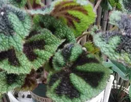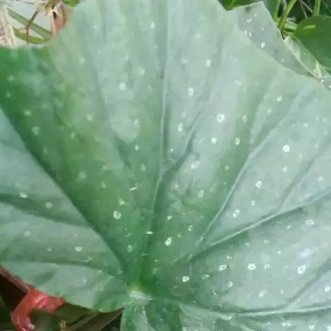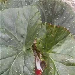 真菌病害,由葡萄孢菌(Botrytiscinerea)引起的灰霉病症状:秋海棠叶片灰霉病经常发植株的下部,尤其是根茎处与基质接触的地方更容易感染病菌,被水浸润的病斑很快会扩散到整个叶整个植株,受害区域呈现坏死斑点,逐渐由褐色转变为黑色。当夜间温度较低、白天温度较高而且湿高时,病原孢子生长加快,受害的叶片上会长出灰绿色的霉状物。