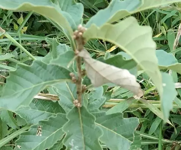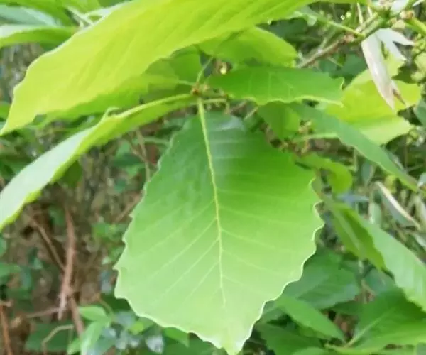 落叶乔木或灌木状,高达20米,树皮灰褐色,深纵裂。小枝密生灰色至灰褐色绒毛;冬芽卵状圆锥形,芽长4-6毫米,芽鳞多数,被疏毛。叶片倒,卵形、椭圆状倒卵形,长7-15厘米,宽3-8厘米,顶端钝或短渐尖,基部楔形或窄圆形,叶缘具波状锯齿或粗钝锯齿,幼时两面被灰黄色星状毛,侧脉每边8-12条,叶背支脉明显;叶柄长3-5毫米,被棕黄色绒毛。雄花序长6-9厘米,花序轴被绒毛,雌花序长1-4厘米,生2-4朵花,壳斗杯形,包着坚果约1/3,直径0.8-1.1厘米,高4-8毫米;小苞片卵状披针形,排列紧密,在口缘处稍伸出。坚果长椭圆形或卵状长椭圆形,直径0.7-1.2厘米,高1.7-2厘米,无毛,果脐突起。花期4月,果期10月。