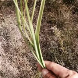 根状茎圆柱形,长2-12厘米或更长, 直径0.3-1.5厘米。叶4-8枚,倒披针形、披针形或长椭圆形,长10-20厘米,宽3-5厘米,先端渐尖,下部渐狭成柄,柄基部扩大成膜质鞘。