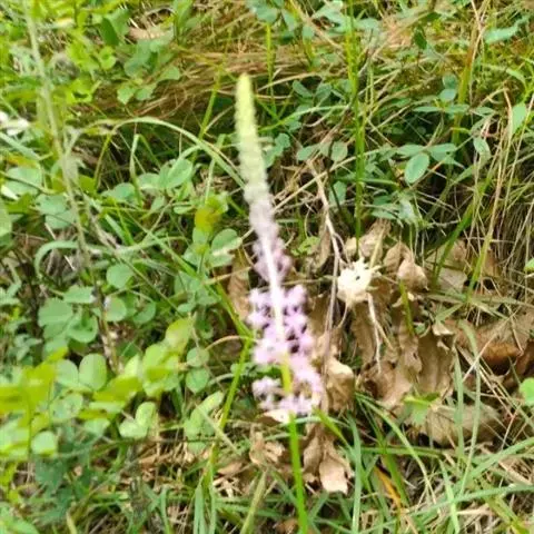 花葶高13-20厘米;总状花序长4-6厘米,宽2.5-4厘米,有花12-18朵;苞片白色或稍带红色,短于花梗;花梗长7-17毫米;花被片披针形,先端钝,长4-6毫米,宽1.5-2.4毫米,开展,有一条脉;雄蕊短于花被片,花丝长3毫米,花药椭圆形,长约2毫米;子房长2毫米,花柱长2毫米。浆果近球形,直径约5毫米。花期5-6月,果期7月。