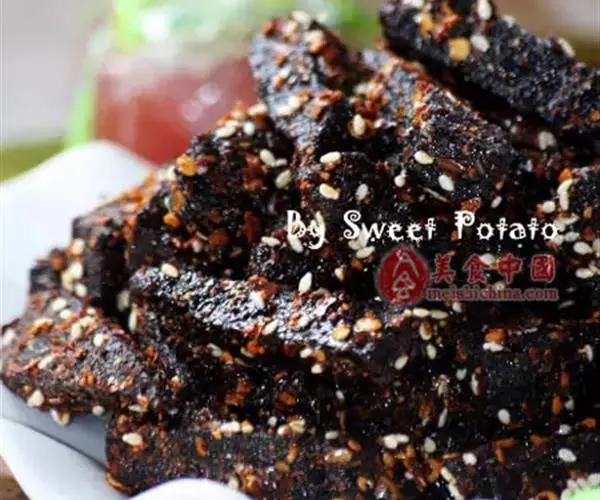 10. 然后中火收汁,汁干时加入辣椒油,撒上炒熟的芝麻翻炒均匀出锅,凉后装盘食用。