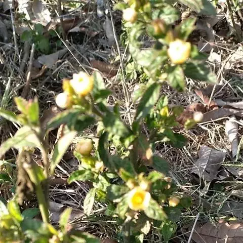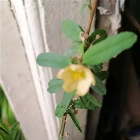 直立亚灌木,高约1米,小枝被星状长柔毛。叶二型,下部生的宽菱形至扇形,长2.5-5厘米,宽近似,先端短尖至浑圆,基部楔形,边缘具2齿,上部生的长圆状椭圆形至长圆形,长2-3厘米,两端钝至浑圆,上面疏被星状毛或糙伏毛至几无毛,下面密被灰色星状毡毛;叶柄长5-10毫米,被星状柔毛;托叶钻形,较短于叶柄。花单生或簇生于小枝端,花梗长约1厘米,密被星状粘毛,中部以上具节;萼杯状,长约7毫米,裂片三角形,疏被星状柔毛;花黄色,直径1-1.5厘米,花瓣倒卵形,长约8毫米;雄蕊柱长约5毫米,被长硬毛。果近圆球形,直径约6毫米,分果爿8-9,疏被星状柔毛,具短芒;种子黑褐色,平滑,长2毫米,种脐被白色柔毛。花期6-11月。