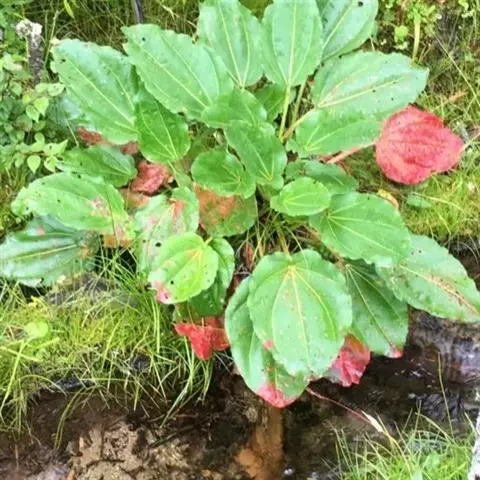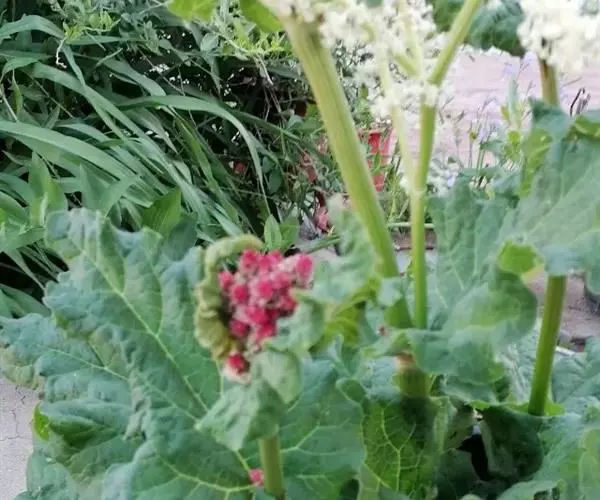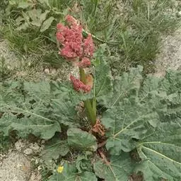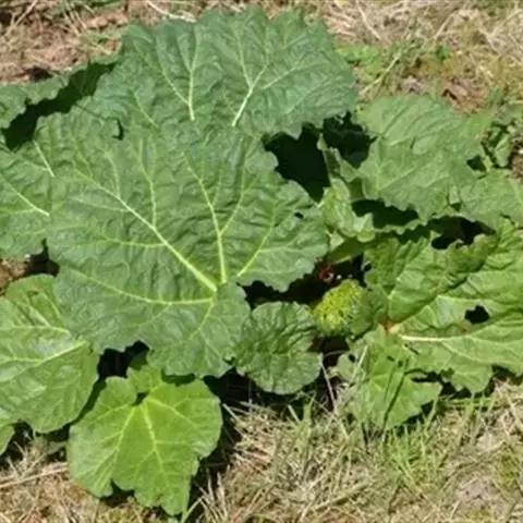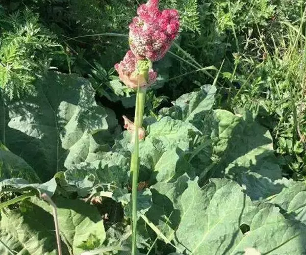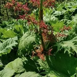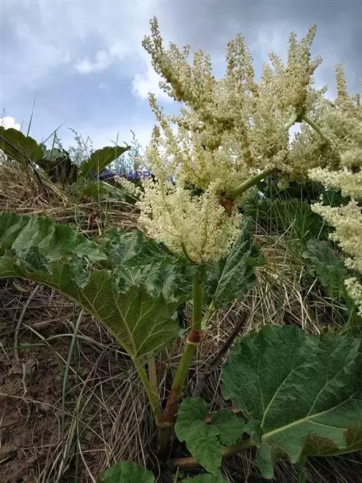 波叶大黄(Rheum undulatum L. )是蓼科,大黄属波叶组多年生草本植物。高可达1.5米,茎粗壮,光滑无毛,基生叶大,叶片三角状卵形或近卵形,叶上面深绿色,下面浅绿色,叶柄粗壮,通常短于叶片,大型圆锥花序,花白绿色,花梗关节位于下部;花被片不开展,花柱较短,向外反曲,柱头膨大,较平坦。果实三角状卵形到近卵形,种子卵形,6月开花,7月以后结果。