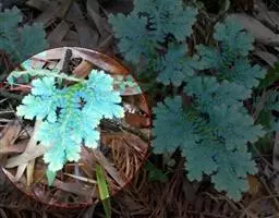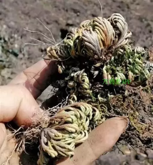 2、垫状卷柏形态与卷柏相似,主要区别为根散生,不聚生成干,分枝多而密。腹叶并行,指向上方,肉质,全缘。