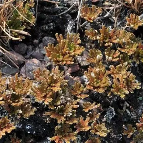 2、垫状卷柏:须根多散生。中叶(腹叶)两行,卵状披针形,直向上排列。叶片左右两侧不等,内缘较平直,外缘常因内折而加厚,呈全缘状。