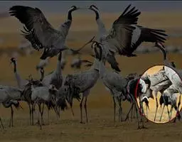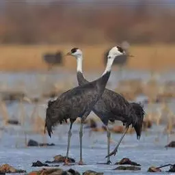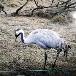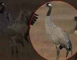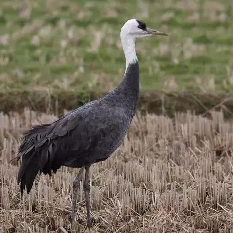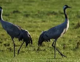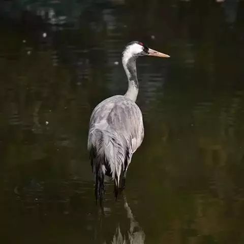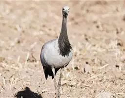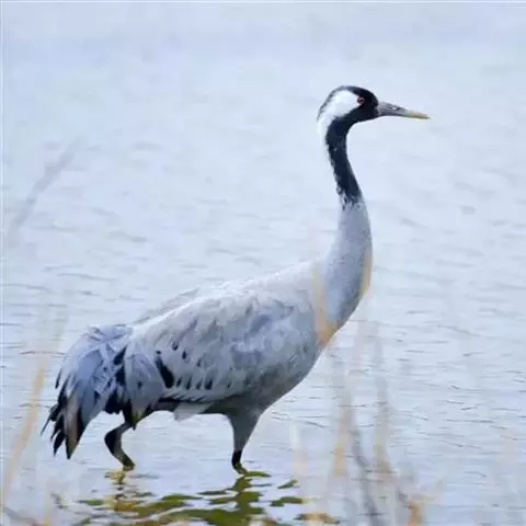 蓑羽鹤大型涉禽,体长68~92厘米,是鹤类中个体最小者。通体蓝灰色,眼先、头侧、喉和前颈黑色,…
