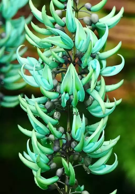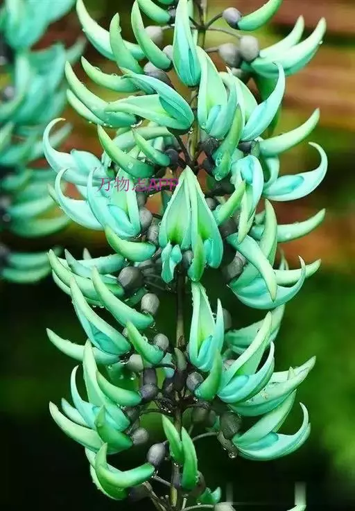 翡翠葛与我们常见的白色禾雀花属同科植物,其花朵比白色禾雀花要小一些,但更精致可爱。蓝绿色的花在自然界本身就比较少见,再加上其特别的花型,更受花友们的追捧。