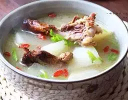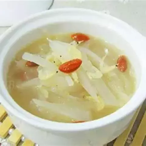 5.用大火把汤烧开,转小火慢炖2小时左右,出锅前5分钟调入枸杞火和食盐即可。