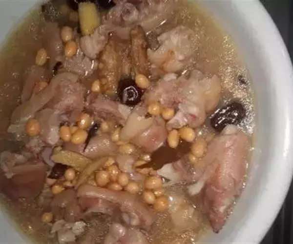 主料:猪蹄250克,大豆250克