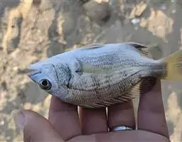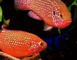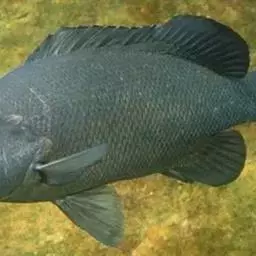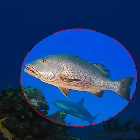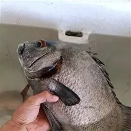 形态特征:体侧扁,呈长椭圆形,一般体长15~30厘米、体重300~1000克、自头部至背鳍前隆起。体被大弱栉鳞,头部和胸鳍前鳞细小而紧密,腹面和背部鳞较大。头大,口小、左右额骨愈合成一块,上颌前端有犬牙4个,两侧有臼齿2列。前部为颗粒状,后渐增大为臼齿;下颌前端有犬牙6个,两侧有颗粒状臼齿2列、前鳃盖骨后半部具鳞、全身呈现淡红色,体侧背部散布着鲜艳的蓝色斑点。尾鳍后缘为墨绿色,背鳍基部有白色斑点。