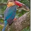 鹳嘴翡翠:体长33-37厘米。体重140-200克。共有13个亚种,体型大,嘴形巨大、侧扁,似鹳嘴…