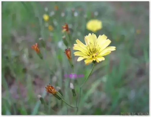 菊科多年生草本,别名:苦碟子、黄瓜菜、苦荬菜。分布于中国东北、华北,华东和华南等省区;朝鲜、苏联(远东地区)也有。抱茎苦荬菜是中生性阔叶杂类草,适应性较强,为广布性植物。花,及疏林下,一般出现于荒野、路边、田间地头,常见于麦田。