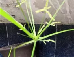 短叶水蜈蚣,是莎草科植物,根状茎长而匍匐,外被膜质、褐色的鳞片,具多数节间,节间长约1.5厘米,每一节上长一秆。秆成列地散生,细弱,高7-20厘米,扁三稜形,平滑。