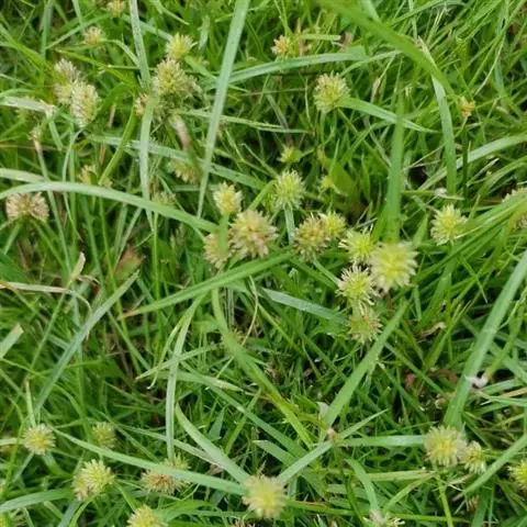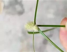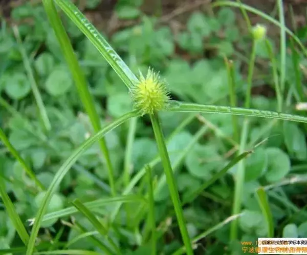 叶状苞片3枚,极展开,后期常向下反折;穗状花序单个,极少2或3个,球形或卵球形,长5-11毫米,宽4.5-10毫米,具极多数密生的小穗。小穗长圆状披针形或披针形,压扁,长约3毫米,宽0.8-1毫米,具1朵花;鳞片膜质,长2.8-3毫米,下面鳞片短于上面的鳞片,白色,具锈斑,少为麦秆黄色,背面的龙骨状突起绿色,具刺,顶端延伸成外弯的短尖,脉5-7条;雄蕊3-1个,花药线形;花柱细长,柱头2,长不及花柱的1/2。