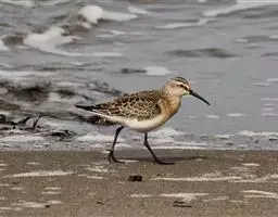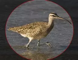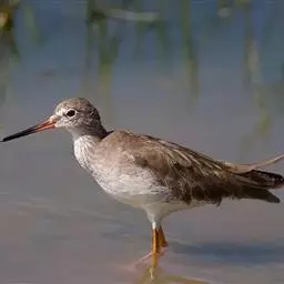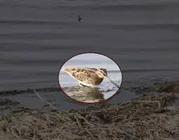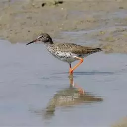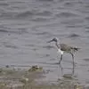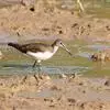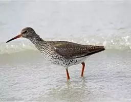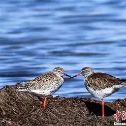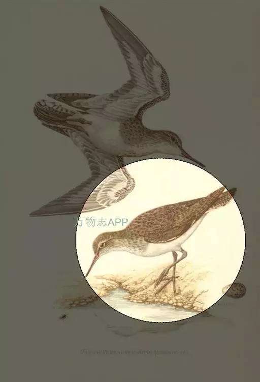 红脚鹬:体长28厘米,上体褐灰,下体白色,胸具褐色纵纹。飞行时腰部白色明显,次级飞羽具明显白色外缘。…