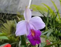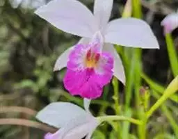 槽舌兰(学名:Holcoglossum quasipinifolium (Hayata) Schltr.):茎长达5厘米,被宿存的叶鞘。叶多数,圆柱形。总状花序腋生,通常具1-3朵花;花开展;萼片和花瓣白色带粉红色,在背面中肋被少数褐红色斑点,多少扭转或边缘波状;花瓣稍斜椭圆形,长1.5-1.6厘米,宽6-7.5毫米,先端钝,基部收狭,具3条脉,其外侧的脉稍分枝,在背面中肋亦隆起呈龙骨状;唇瓣3裂。花期2--9月。