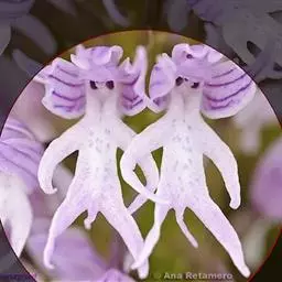 花瓣稍斜椭圆形,长1.5-1.6厘米,宽6-7.5毫米,先端钝,基部收狭,具3条脉,其外侧的脉稍分枝,在背面中肋亦隆起呈龙骨状;唇瓣3裂;侧裂片黄褐色,直立,上缘凹缺成前后裂片,其后裂片半圆形,较短,而前裂片近卵状三角形,较长,长约6毫米;中裂片白色,倒卵状菱形,通常长1.3-1.6厘米,宽7-7.5毫米,先端稍收狭并且截头状而具凹缺,前端边缘多少波状或具细齿,基部收狭而其中央具5-7条小鸡冠状褶片;距狭长,长1.2-1.8厘米,粗约2毫米,向末端变狭,有时向前弯曲;蕊柱长约6毫米;药帽前端伸长。花期2-4 (-9) 月。