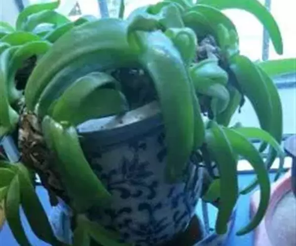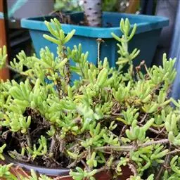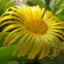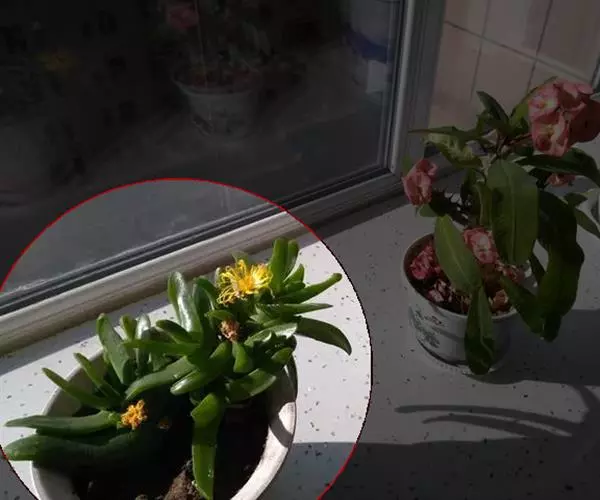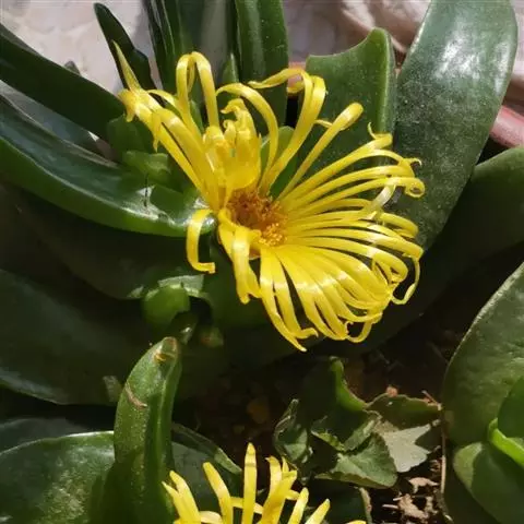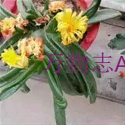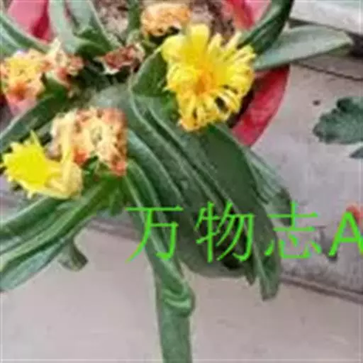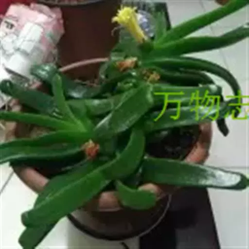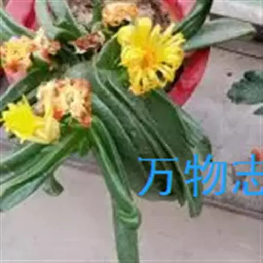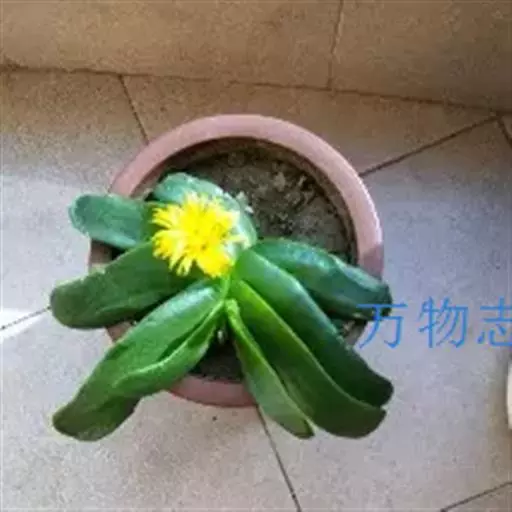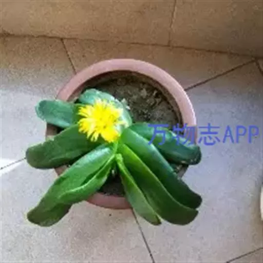 多年生,茎肉质,叉状分枝。叶片舌状或三角状线形,肥厚多肉,鲜绿色,交互对生,紧密排成2列,长约6厘米,宽约1.5厘米,顶端具钝弯钩,基部合生。花顶生,具细长梗,橙黄色,直径约2厘米;花瓣和雄蕊均多数;花托膨大。花期5-6月。