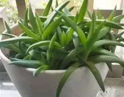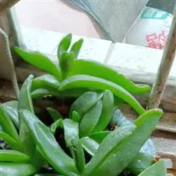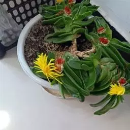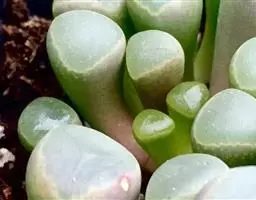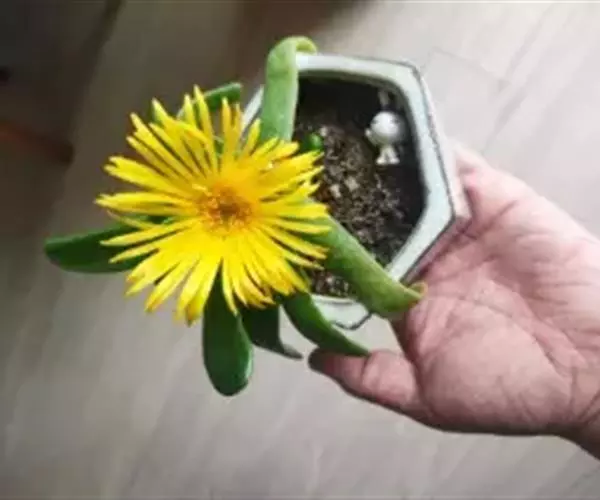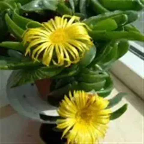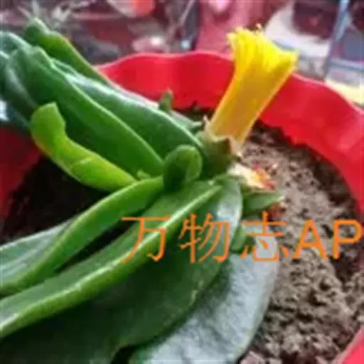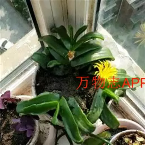 宝绿中文学名弯叶日中花,拉丁文名Mesembryanthemum uncatum Salm-Dyck,又名舌叶花、佛手掌。