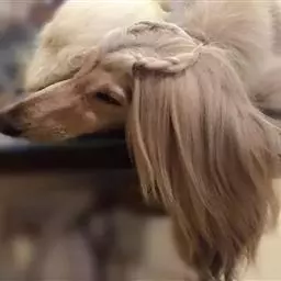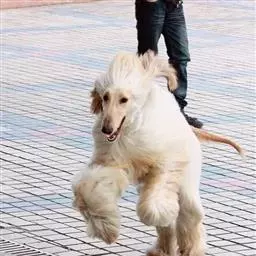 阿富汗猎犬全身披丝绢状的长毛,毛色鲜艳,呈多种颜色,背中线附近毛短,…