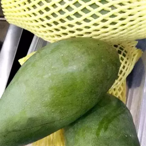 泰国白花芒又名青皮芒,原产泰国,其特点是自果实的腹肩至果腹有一条明显的沟槽,果皮多为暗绿色,果肉淡黄色,质腻滑,味浓甜,芳香,纤维少,品质优。种子扁薄,多胚。产量中等,植株易感流胶病。其果皮青色,肉色淡,在一些地方影响其销路和价值。