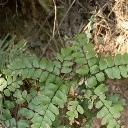 叶簇生,叶柄淡褐色至赤褐色,长2-11厘米。粗0.5-2毫米,疏生鳞片及针头状节状毛,中部以下具关节(基羽下位关节);叶片披针形至长圆状披针形,长4-11厘米,宽1.3-3.6厘米,2回羽状深裂或2回羽状;羽切片10-16对,无柄,中部羽片较大,长圆状披针形至三角状长卵形,长0.6-2厘米,宽0.5-1厘米,钝尖头,小羽片或裂片长圆形,基部下延,先端钝,全缘或具波状齿;叶纸质,两面密生淡褐色、针头状节状毛,背面毛中还混生有淡褐色狭披针形鳞片。孢子囊群圆形;囊群盖呈小的分裂的状,边缘具针头状节状毛;孢子囊环带有16-22个增厚细胞组成;孢子周壁褶皱成网状或拟网状,表面密具小瘤状纹饰。