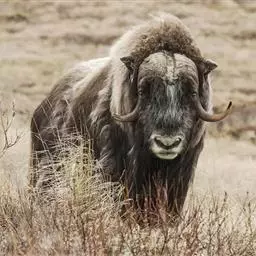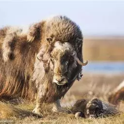 麝牛,是偶蹄目牛科麝牛属哺乳动物。麝牛体型大,但低矮粗壮,头大,吻部宽,眼小;雌雄均具角,四肢短粗,…