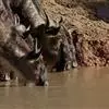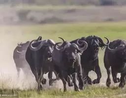 非洲野水牛:共有5个亚种。头体长2.1-3.4米,身高1-1.7米,体重300-900千克。胸膛宽…