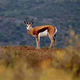 跳羚是哺乳纲、偶蹄目、牛科哺乳动物,属于中型的羚羊。四肢细长;背面毛色黄褐,…