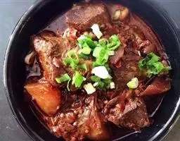 麻辣牛肉是一道四川省的传统名菜,属于川菜系,制作原料主要有牛肉、豆腐、豌豆等,此菜色泽褐红,麻辣鲜香,干香滋润化渣。