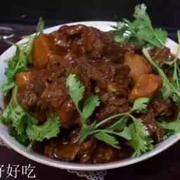 用盐、糖将漂净血水的牛肉丁腌2个小时后再烹制,牛肉吃起来非常软嫩。