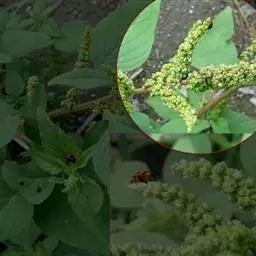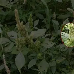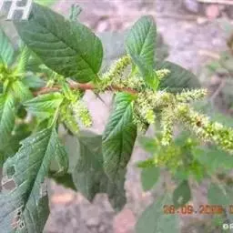 反枝苋是苋科苋属的一年生草本植物。株高达1米;茎密被柔毛;叶菱状卵形或椭圆状卵形,先端锐尖或尖凹,…