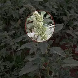 花簇球形,直径5-15毫米,雄花和雌花混生;苞片及小苞片卵状披针形,长2.5-3毫米,透明,顶端有长芒尖,背面具绿色或红色隆起中脉;苋菜花被片矩圆形,长3-4毫米,绿色或黄绿色,顶端有长芒尖,背面具绿色或紫色隆起中脉;雄蕊比花被片长或短。胞果卵状矩圆形,长2-2.5毫米,环状横裂,包裹在宿存花被片内。