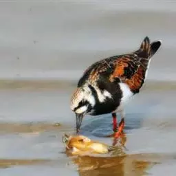 翻石鹬:体重82-135克,体长180-240毫米。体型高矮兼称,看起来十分的滑稽。…
