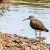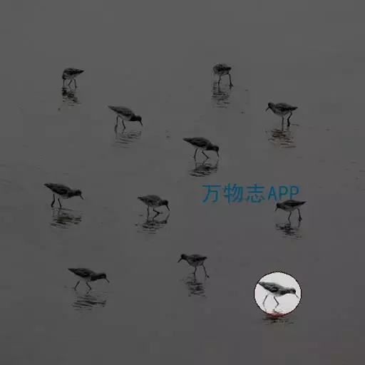 红脚鹬:体长28厘米,上体褐灰,下体白色,胸具褐色纵纹。飞行时腰部白色明显,次级飞羽具明显白色外缘。…