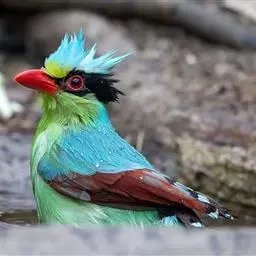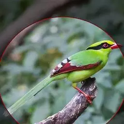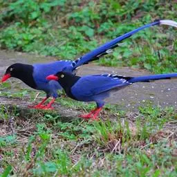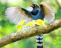 蓝绿鹊:中型鸟类,共有5个亚种。体长36-38厘米。尾长,嘴、脚红色。通体羽色主要为草绿色,…